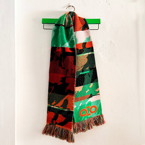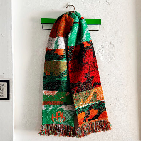 This scarf brings together the colours of Ireland and Palestine, an expression of solidarity, connection, and shared humanity.